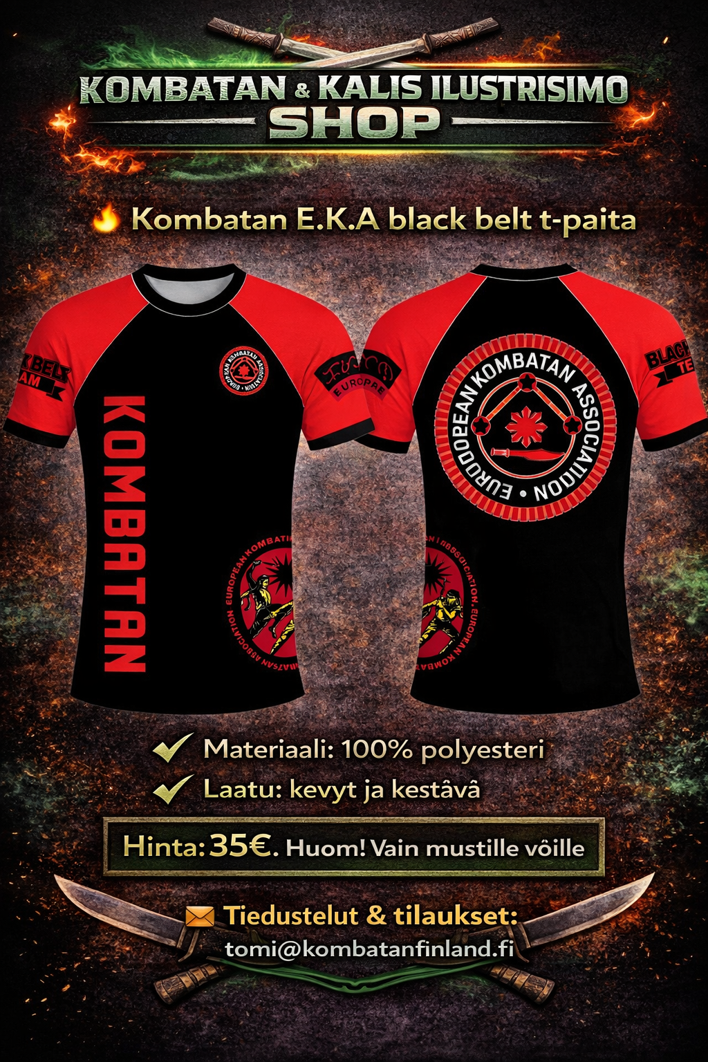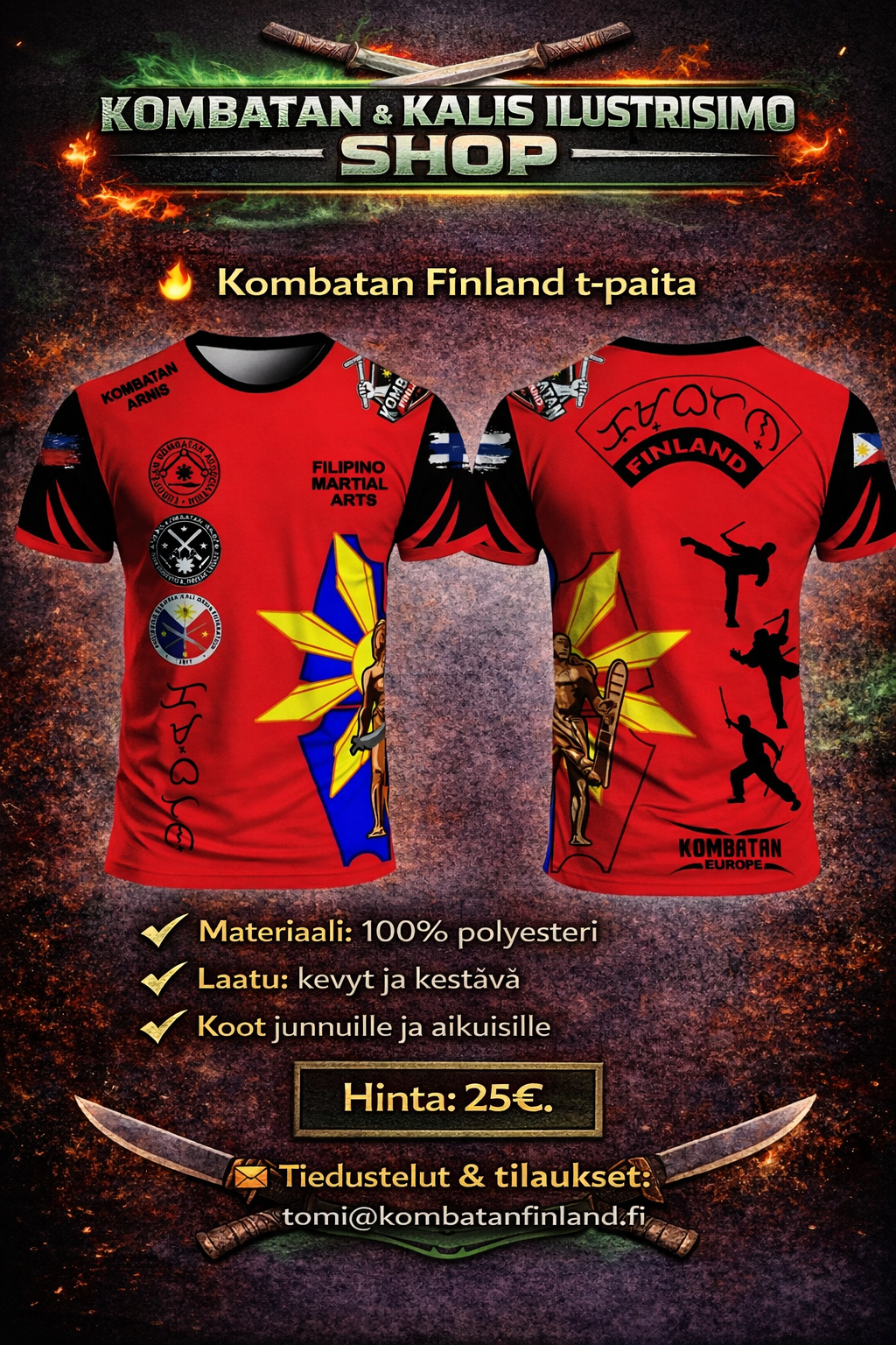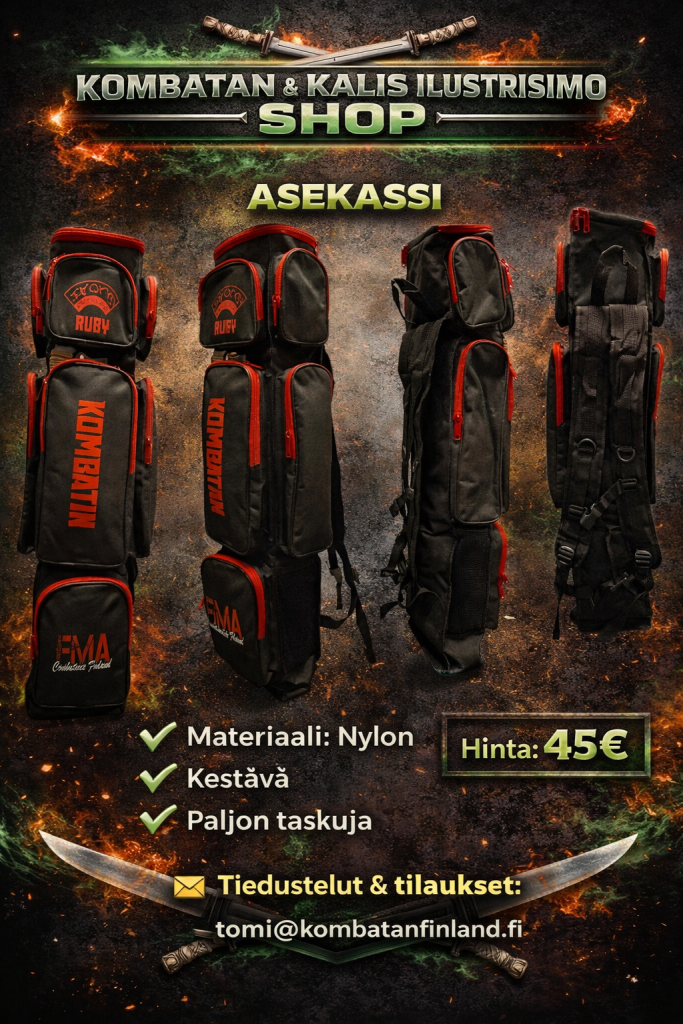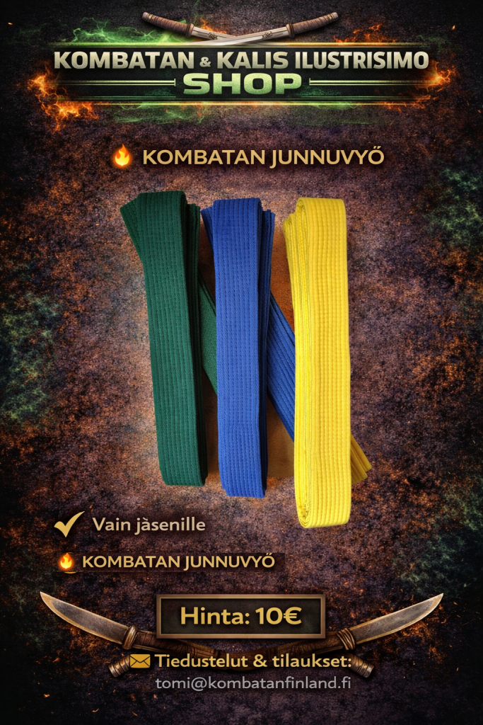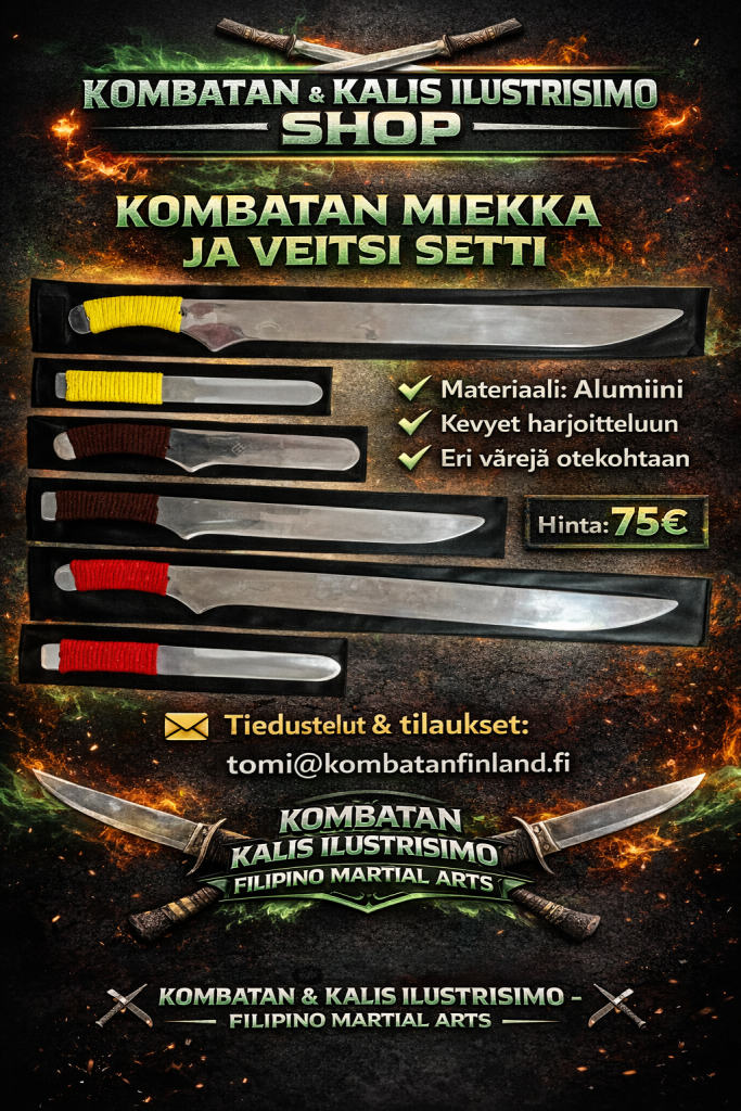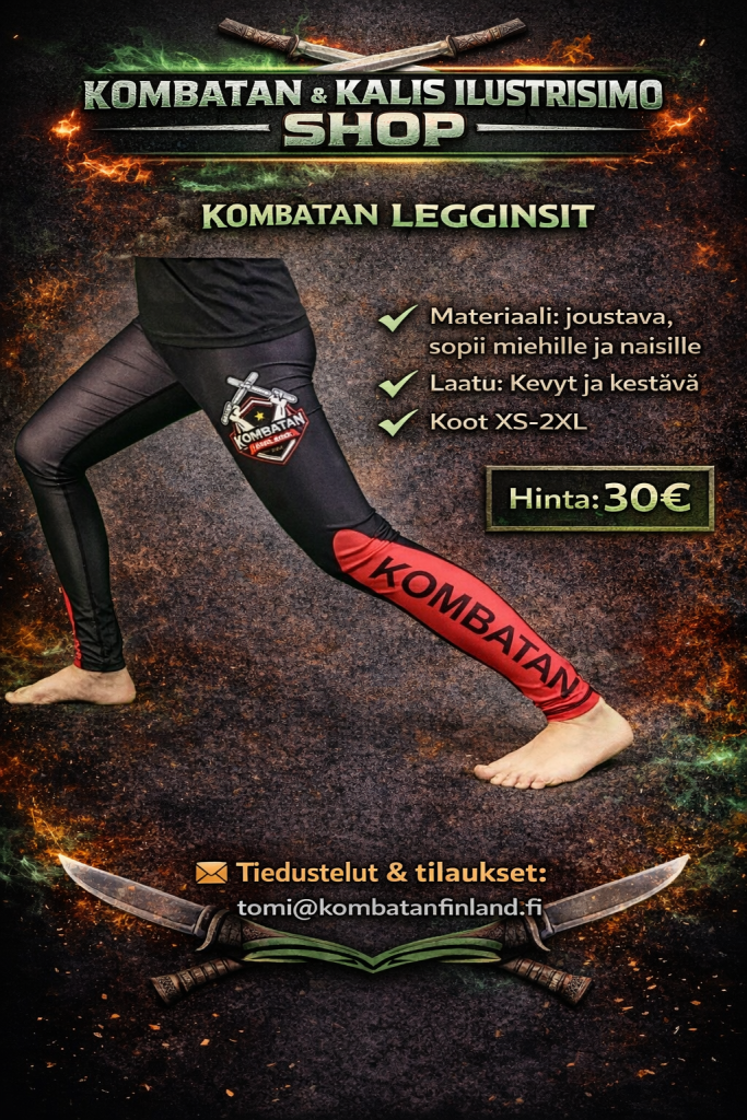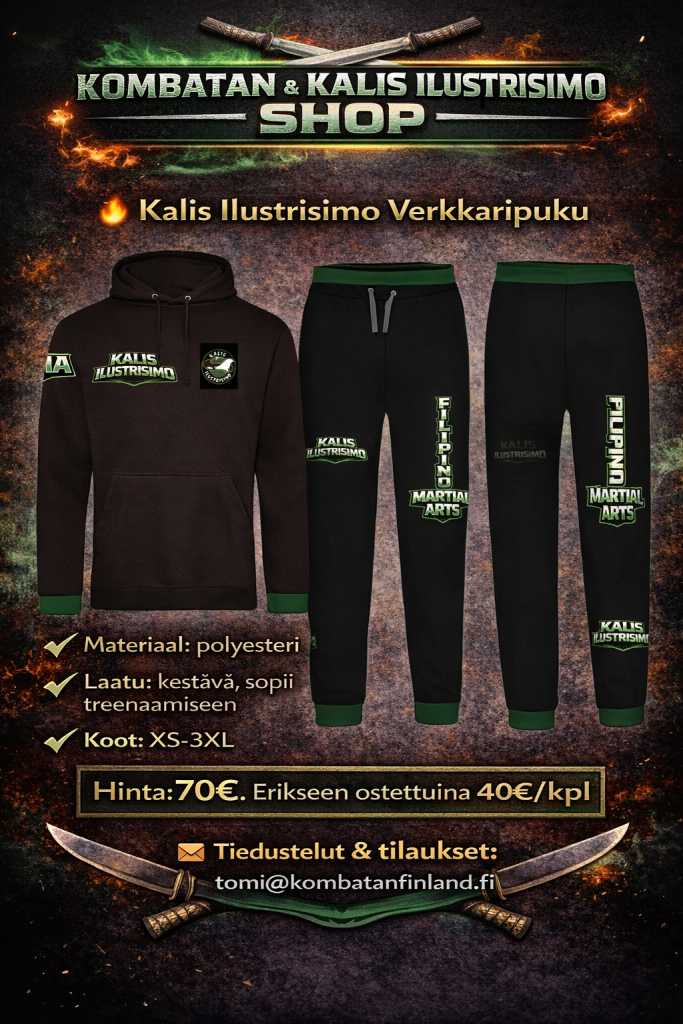 Täältä löydät Suomen Kombatanin ja Kalis Ilustrisimon harjoitusasusteet, harjoitusvälineet sekä vapaa-ajan tuotteita. Tilaukset oman seuran kautta tai suoraan osoitteesta tomi@kombatanfinland.fi