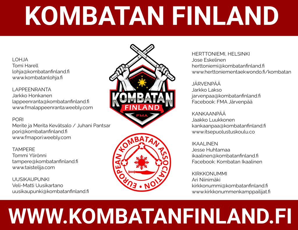 Tällä hetkellä Kombatania voi harjoitella Helsingissä, Ikaalisissa, Järvenpäässä, Kankaanpäässä, Lappeenrannassa, Lohjalla, Porissa, Tampereella, Uudessakaupungissa ja Kirkkonummella.