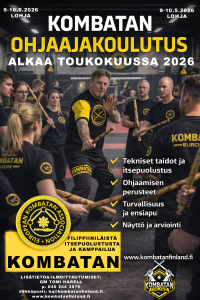 Koulutusmaksu ei pidä sisällään Euroopan Kombatan järjestön virallista t-paitaa (25€) eikä muita harjoitusvälineitä. Harjoitusvälineitä saa aluksi lainaksi koulutuspaikalta.